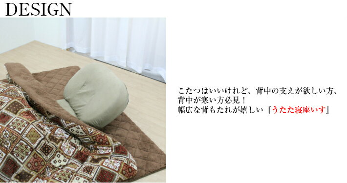 こたつはいいけれど、背中の支えが欲しい方、背中が寒い方必見!幅広な背もたれが嬉しい「うたた寝座いす」幅広な背もたれは肉厚たっぷりボリュームで安定感のある幅広な背もたれで寝返りも出来て、ちょっと一息やうたた寝にピッタリです。