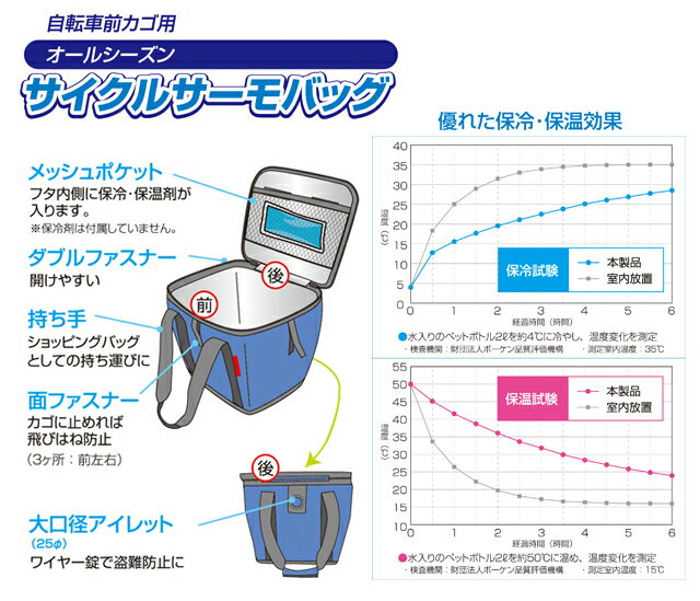送料無料 保冷バッグ レジカゴバッグ 保冷 保温 大容量 自転車 サイクルサーモバッグ COL-01 MARUTO 保冷剤 おしゃれ かわいい シンプル 自転車 カゴ バッグ レジカゴ 暑さ対策 保冷 保温 ☆