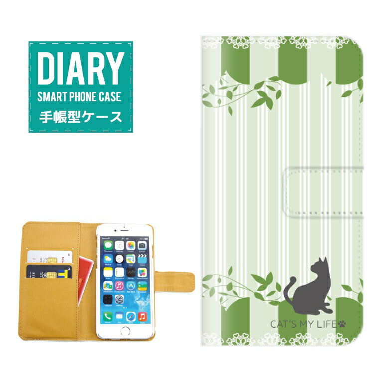 AQUOS U SHV35ケース 手帳型 (V) 送料無料 キャット デザイン CAT'S MY LIFE ネコ 猫 ボーダー デニム チェック カワイイ 癒し 女子 ペット