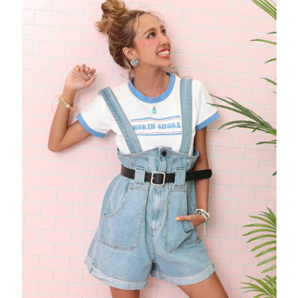 ハイウエストベルト付デニムサロペット/アナップ(ANAP)