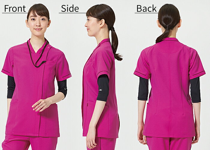 unite×MIZUNOのコラボスクラブにフロントファスナータイプが新登場!さっと脱ぎ着が出来るスタイルに、現場に必要な機能性を付加して実用性のあるスクラブに仕上がりました。